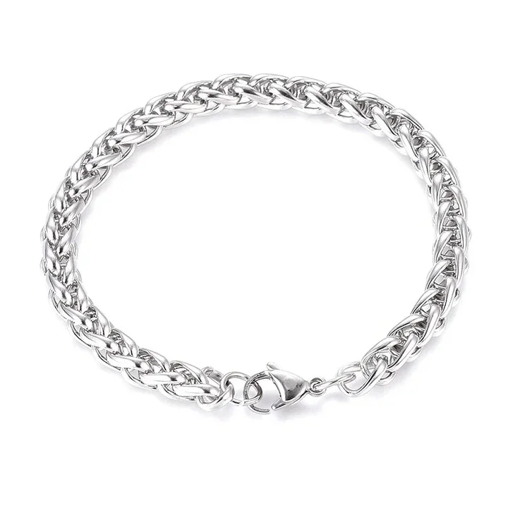 Ce bracelet gourmette en acier inoxydable avec une maille entrelacée est un choix élégant et sophistiqué. La combinaison de mailles entrelacées crée un motif unique et ajoute une touche de style à votre tenue.
