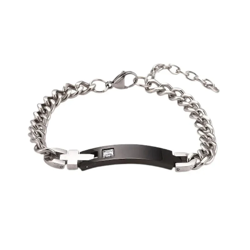 Type : Bracelet pour homme avec un pendentif croix orné de zirconium.